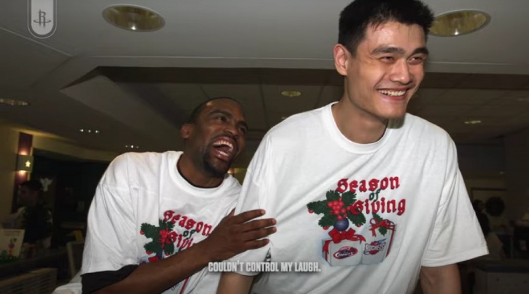 談到姚明,莫布里說:“姚明會說,他很樂意我坐在旁邊,尤其是當我就坐在他身邊的時候,我太喜歡他的幽默感了。所以,比如我們在參加宴會、活動或者其他類似場合時,他會講個笑話,或者拿某個人開個小玩笑,那些話對我來說實在太好笑了,我根本忍不住,總會直接笑噴。我就完全不顧形象地大笑。然后你看他反應——我就得捶他幾下,又摟又抱地表達情緒?!?/p>