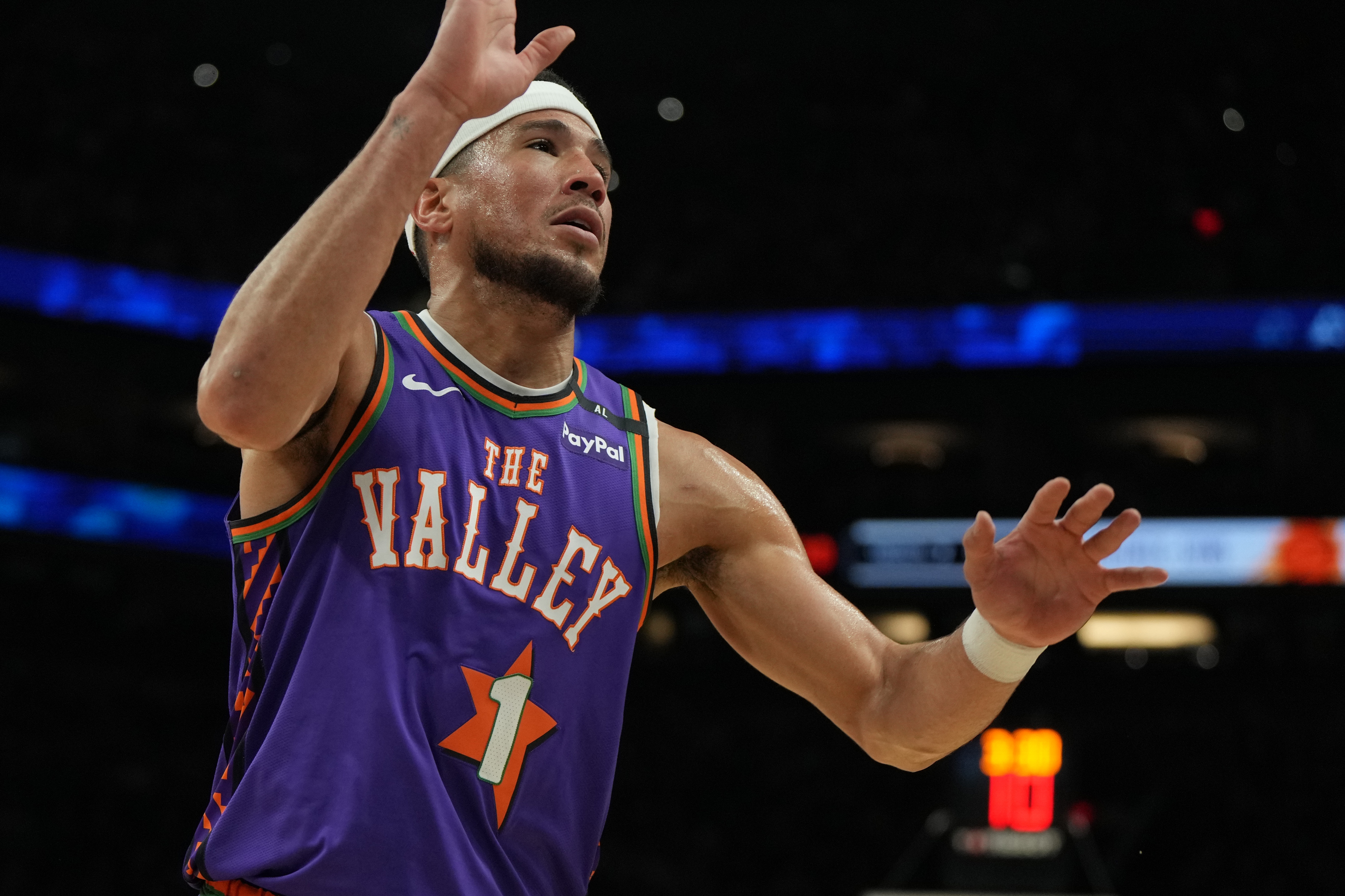 上半場,布克出戰(zhàn)16分鐘,他9投4中,三分2中0,罰球8中6,得14分2板5助。正負值為+11。