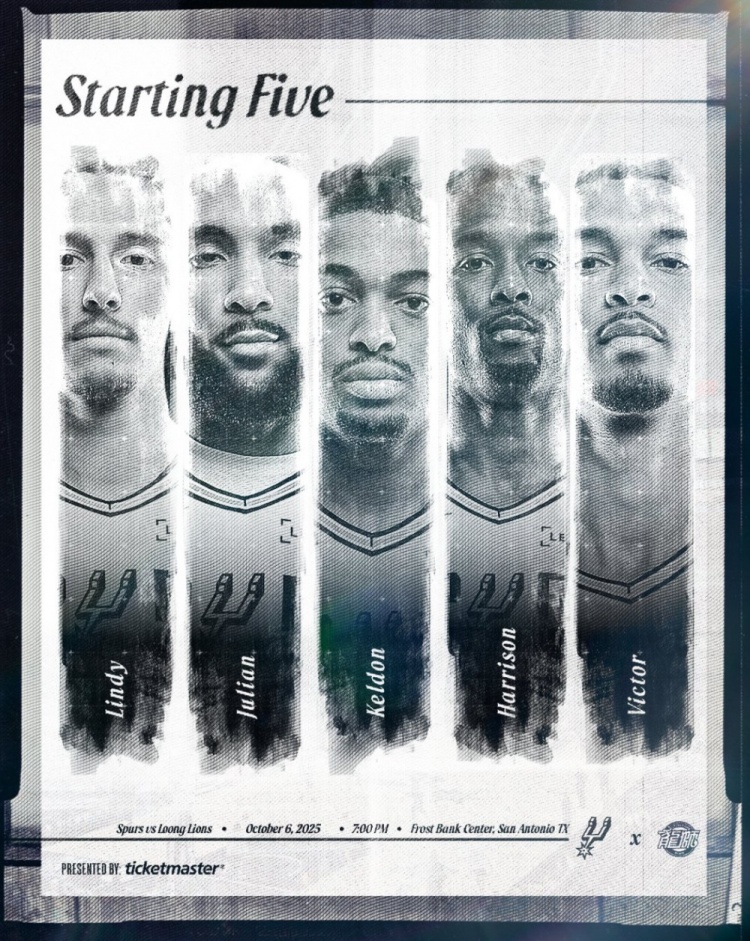 馬刺首發(fā):沃特斯、尚帕尼、凱爾登-約翰遜、哈里森-巴恩斯、文班亞馬。