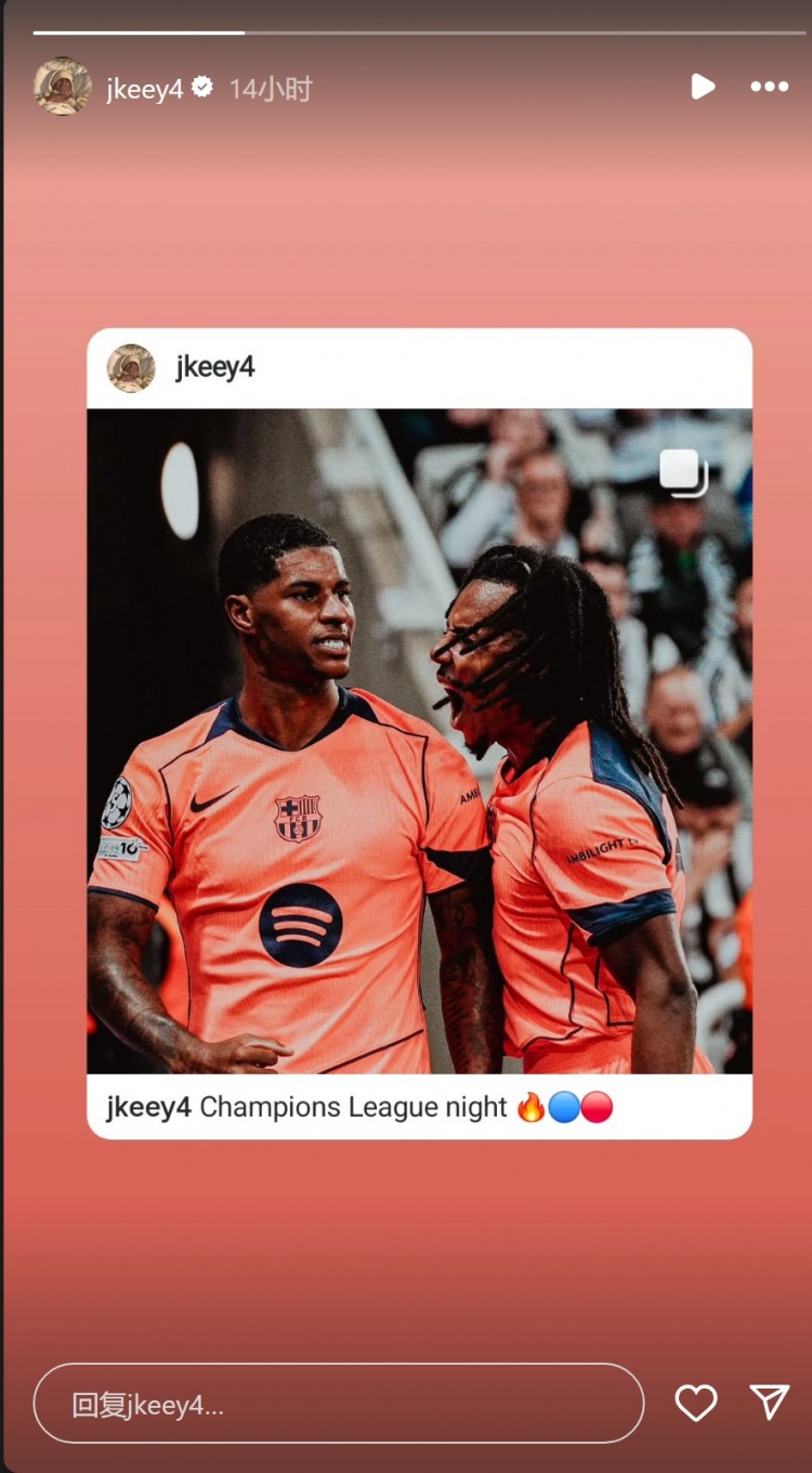此役拉什福德梅開二度,為他送出一記助攻的孔德更新社媒動態(tài),曬出自己與拉什福德的賽場合照,配文:“歐冠之夜?!?/p>