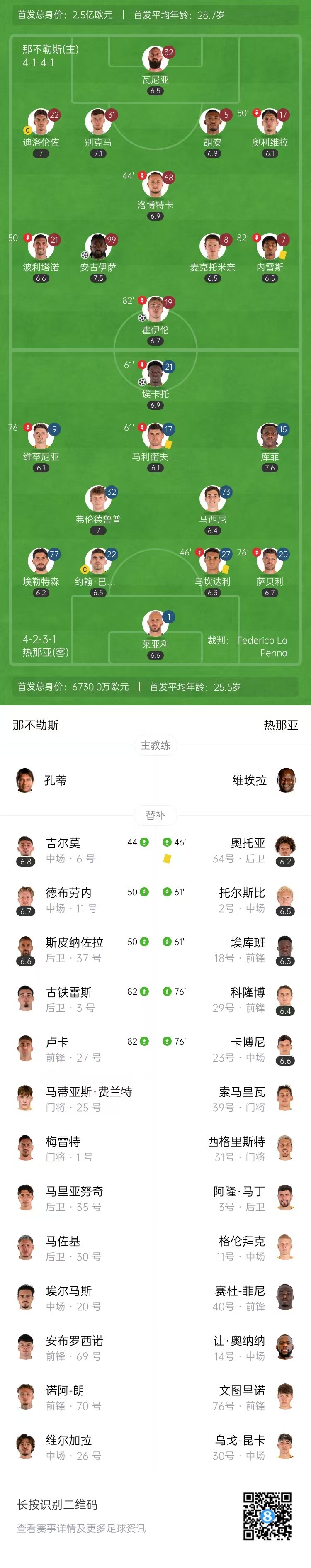 全場比賽結(jié)束,那不勒斯2-1熱那亞。