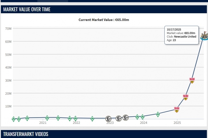 10月17日訊 德國轉(zhuǎn)會市場網(wǎng)更新英超球員身價,紐卡斯爾新援沃爾特馬德身價暴漲3500萬歐,升至6500萬歐元!