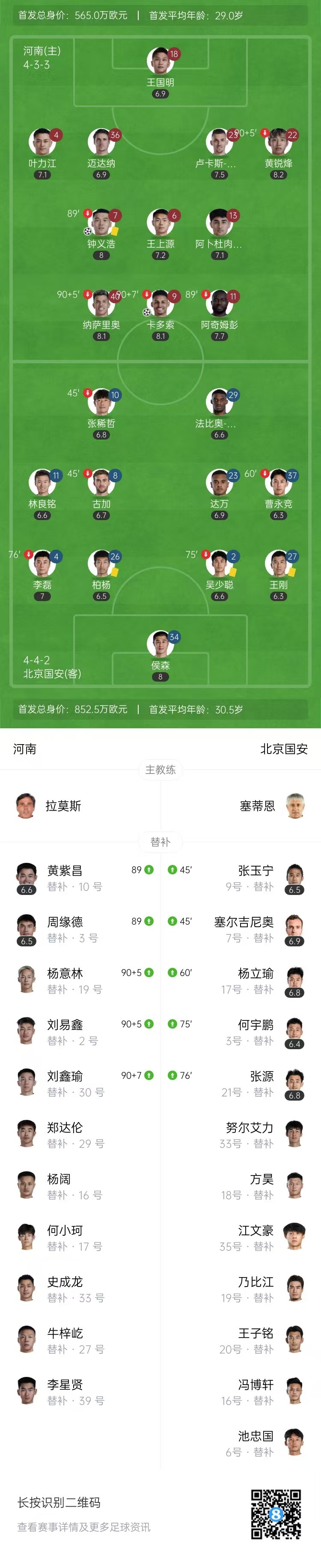 全場比賽結束,河南2-0北京國安。