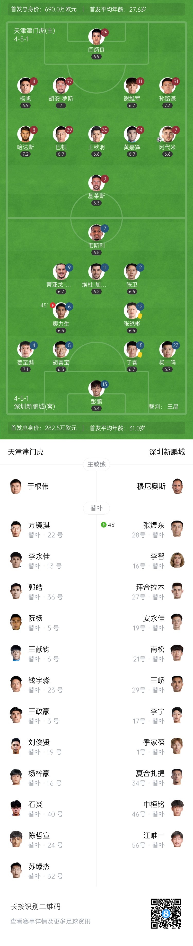 9月21日訊 北京時(shí)間19:35,中超第25輪天津津門虎vs深圳新鵬城。上半場(chǎng),基萊斯中柱,張曉彬染黃;半場(chǎng)補(bǔ)時(shí)階段阿代米打破僵局!半場(chǎng)結(jié)束,天津津門虎暫1-0領(lǐng)先深圳新鵬城。